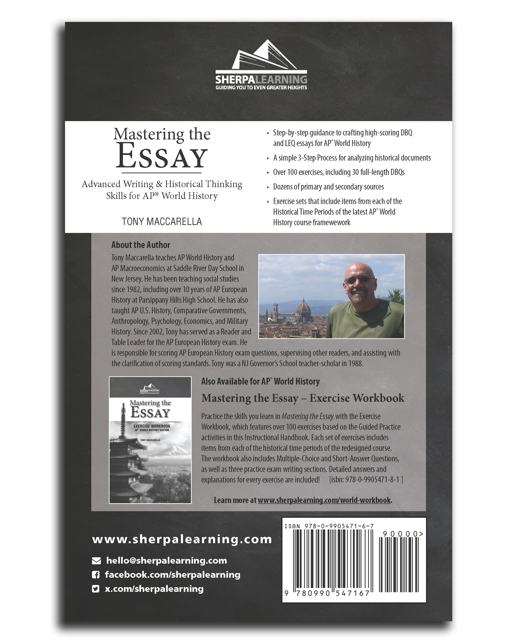 What’s the biggest challenge faced by your AP World History students this year? As they begin to master the content, you will find that writing clear, direct, persuasive essays is their biggest challenge—and the most important skill for them to master. Our biggest challenge, as teachers of AP World History, is trying to help them develop their essay writing skills without sacrificing valuable time needed for content instruction. That’s where Mastering the Essay comes in.